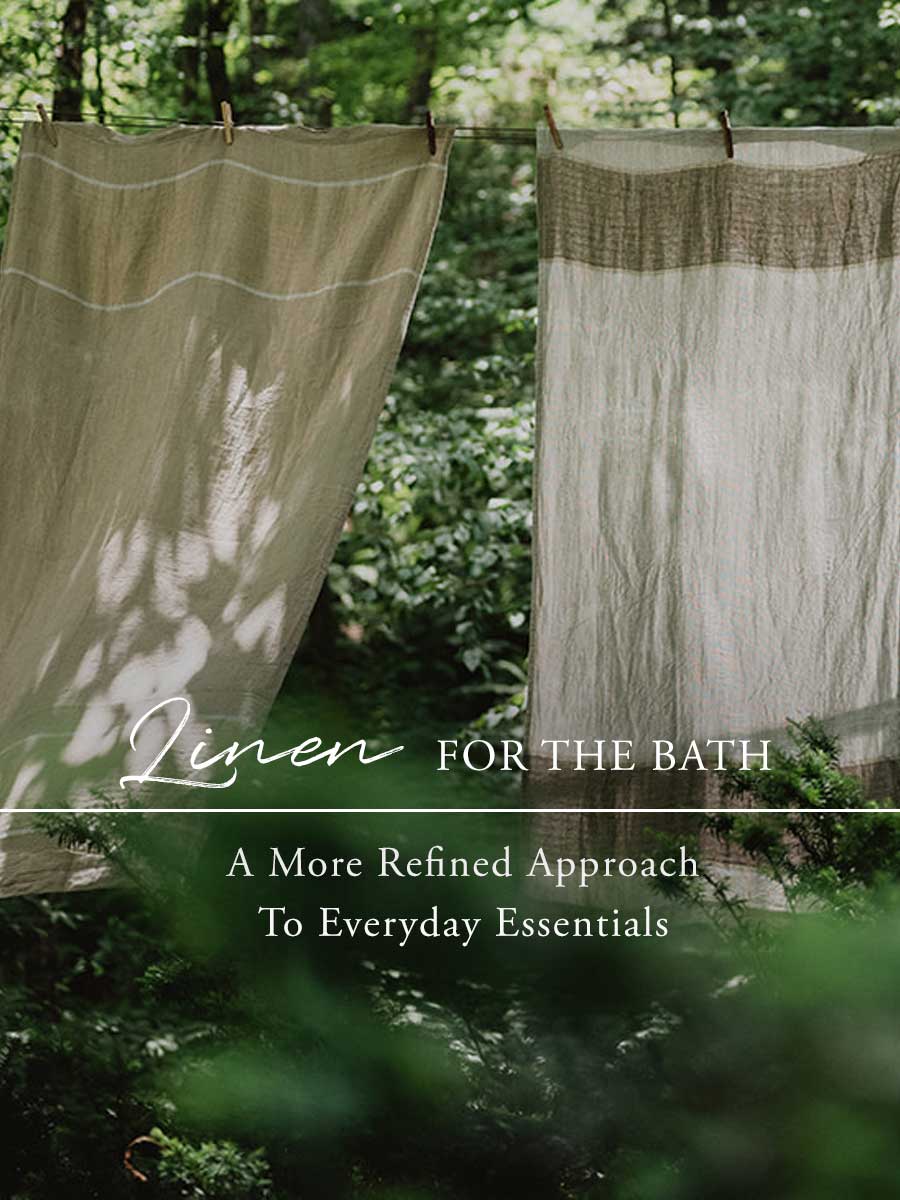 The bath is a sacred ritual for many. Our bath linens are made from all natural materials; durable and beautiful. We were the first to introduce linen bath towels, both as a terry and a flat weave. We offer wash cloths to bath mats and everything in between. Our flat weave linen towels have been known to last 10 years!