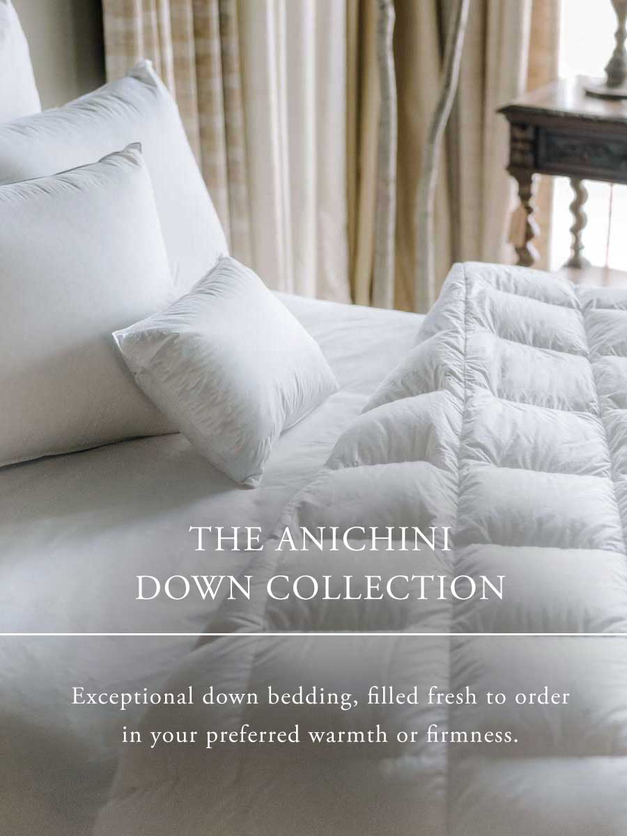 The ANICHINI Down Collection brings together the world’s finest goose down and eiderdown, crafted into duvets and pillows of extraordinary comfort and loft.