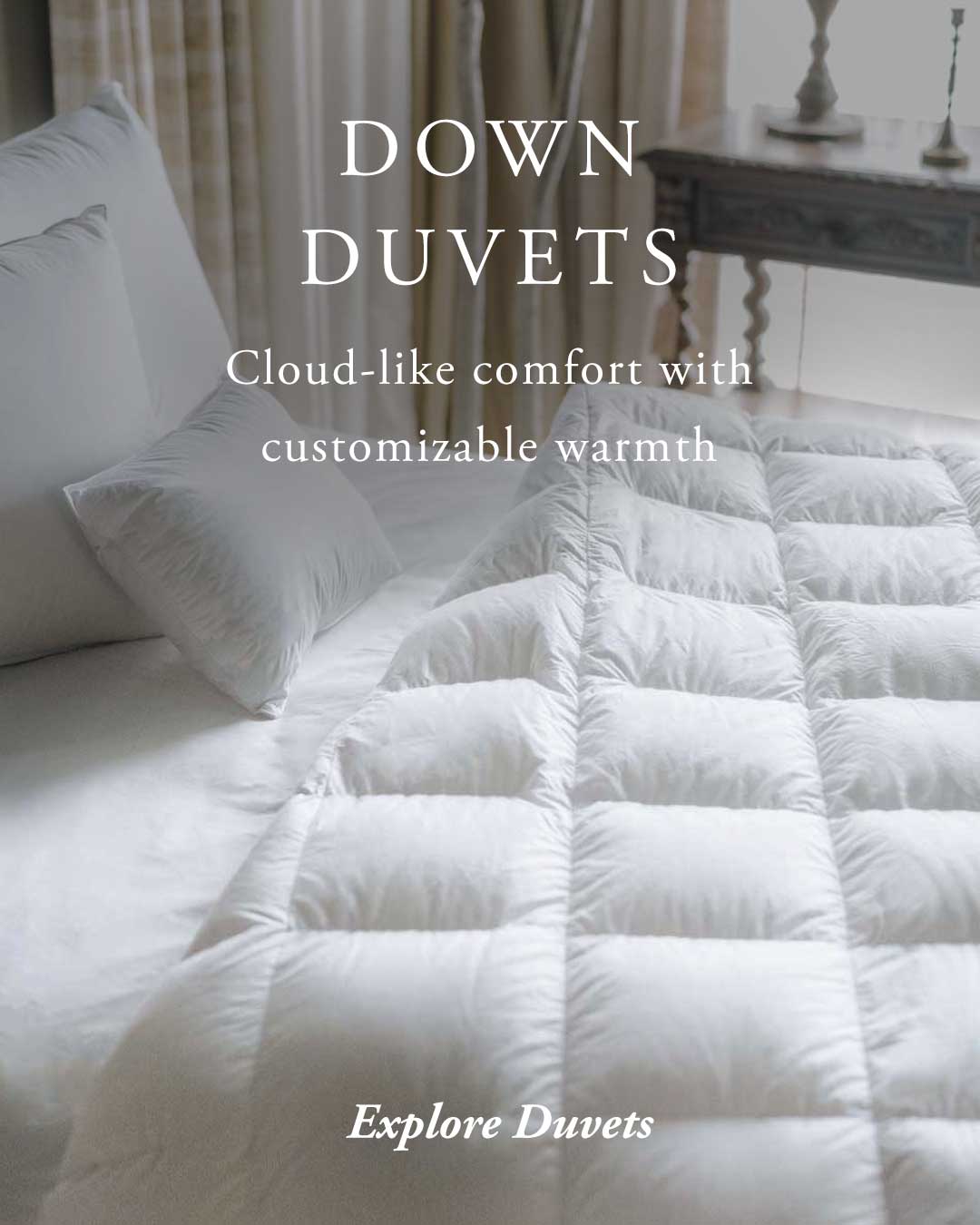 Each piece is filled fresh to order, allowing you to customize your bedding to your ideal warmth and support.