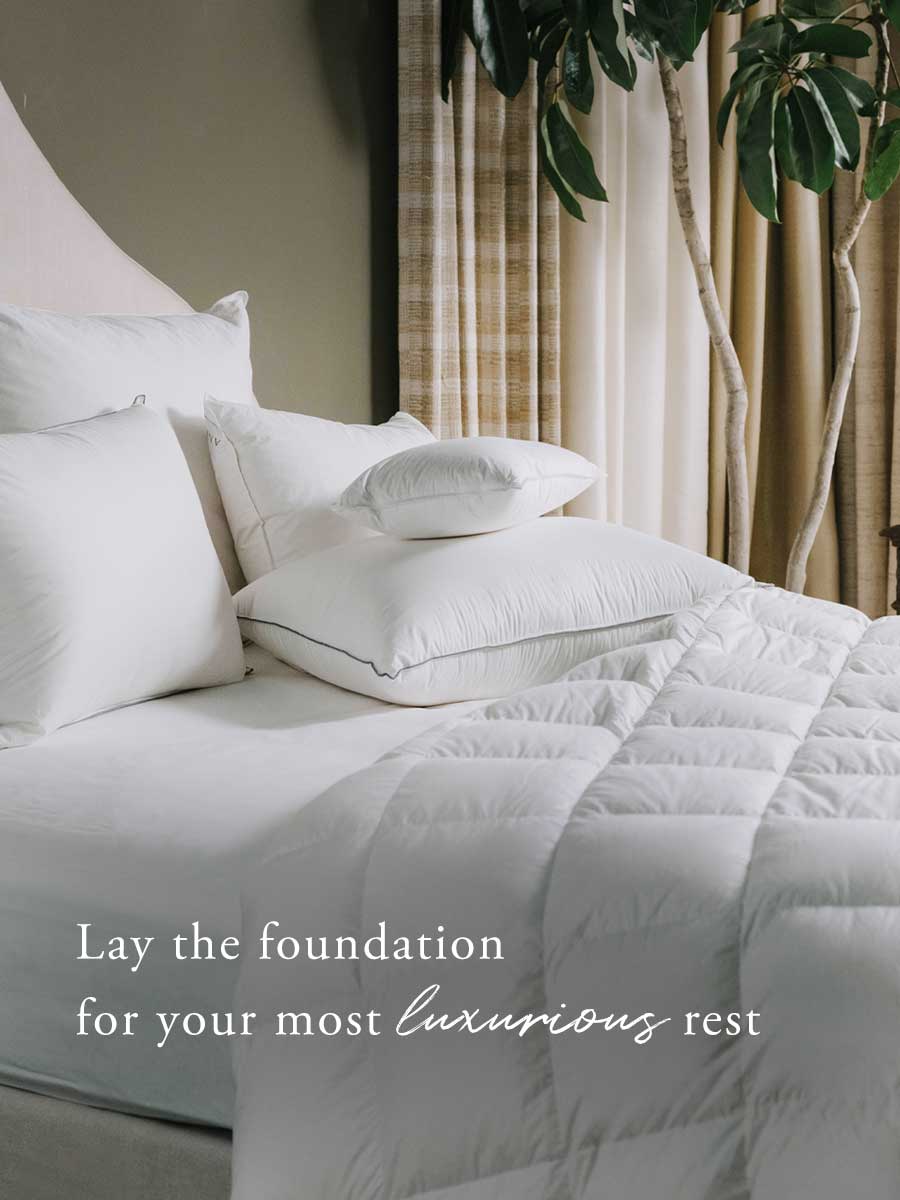 Exceptional sleep begins with the finest layers. Pair your silk covered duvet and pillows with our with our handcrafted mattress toppers and protective covers, designed to enhance comfort and preserve the beauty of your bedding for years to come.