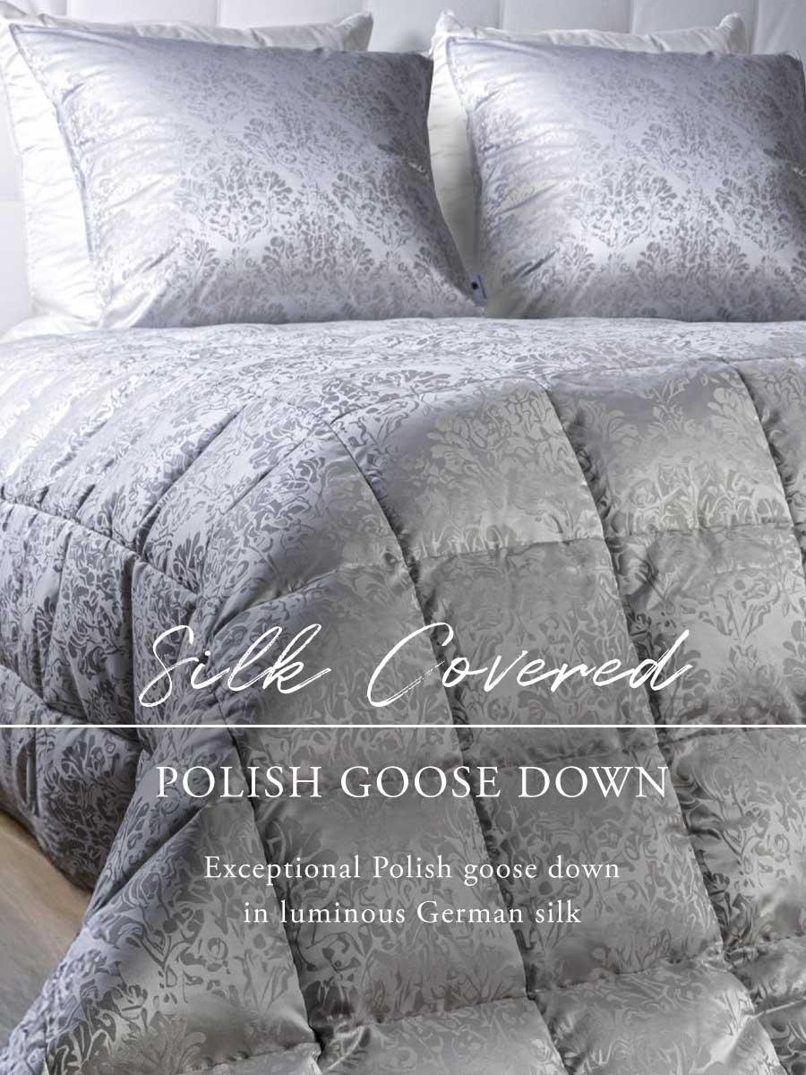 The Silk Covered Down collection pairs exceptional Polish goose down with luminous German silk,