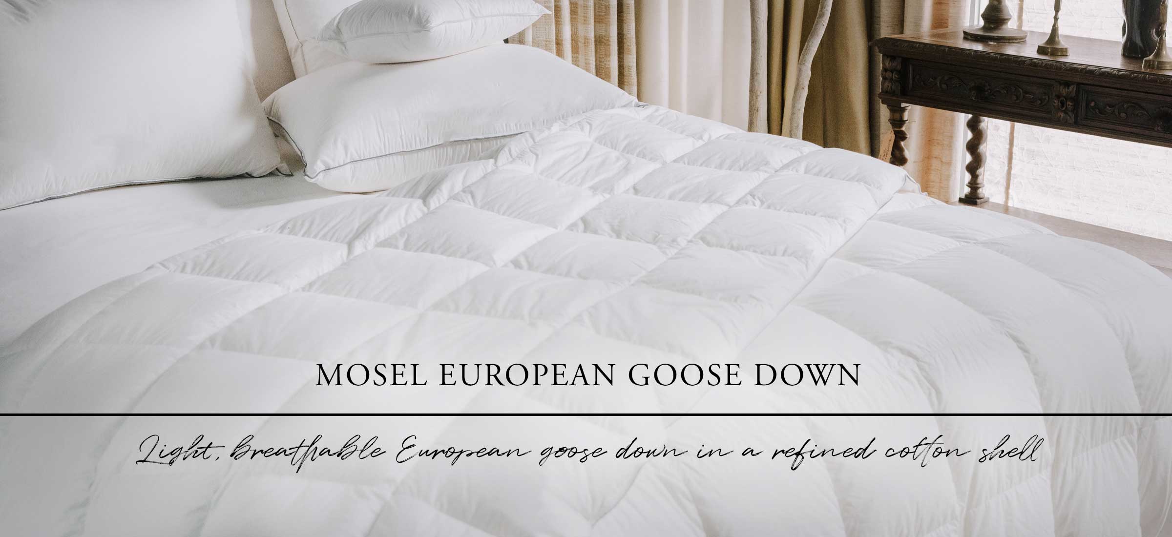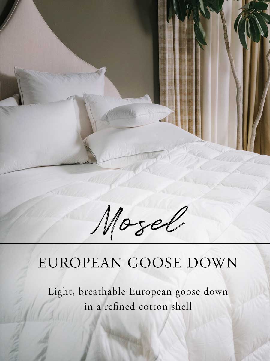 The Mosel collection pairs exceptional European goose down with a beautifully soft cotton sateen shell,