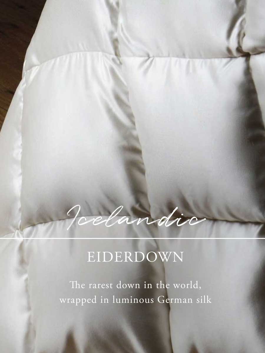 The Eiderdown collection represents the pinnacle of luxury bedding. Collected by hand from wild Icelandic eider ducks, this extraordinary down is prized for its remarkable warmth, softness, and lightness.